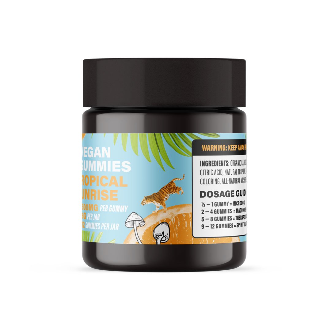 FRESH FRUIT FARMS Tropical Sunrise-Flavored Gummies are a cut above the rest. Specifically designed for those seeking a potent, natural, and enjoyable experience, each gummy in this 12-count pack contains a whopping 1/2 gram of full spectrum Fresh Fruit Mushroom Extract. Go beyond microdosing and dive into an intense, transformative experience.